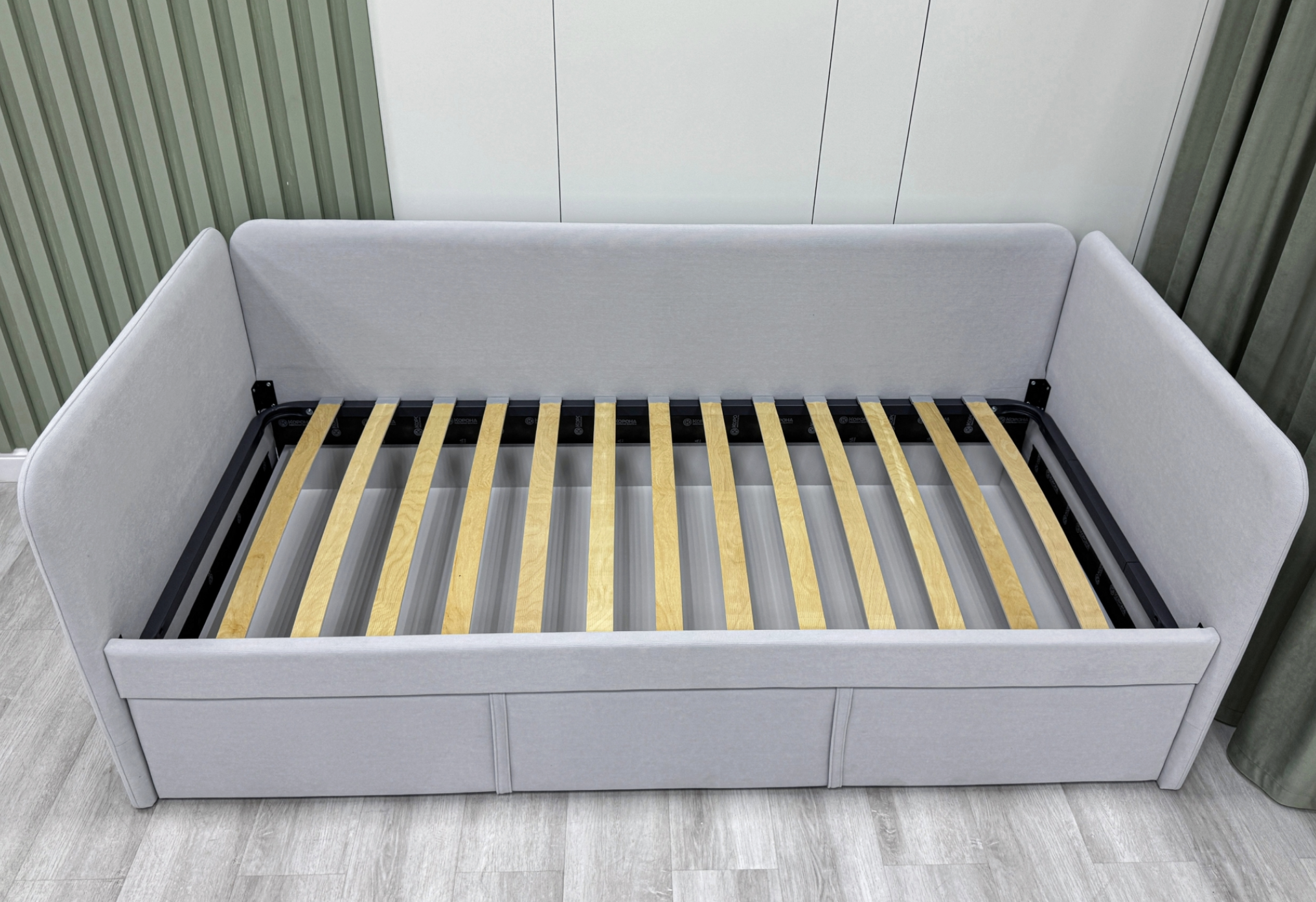 Кровать с универсальной малой спинкой, которую можно установить справа или слева.