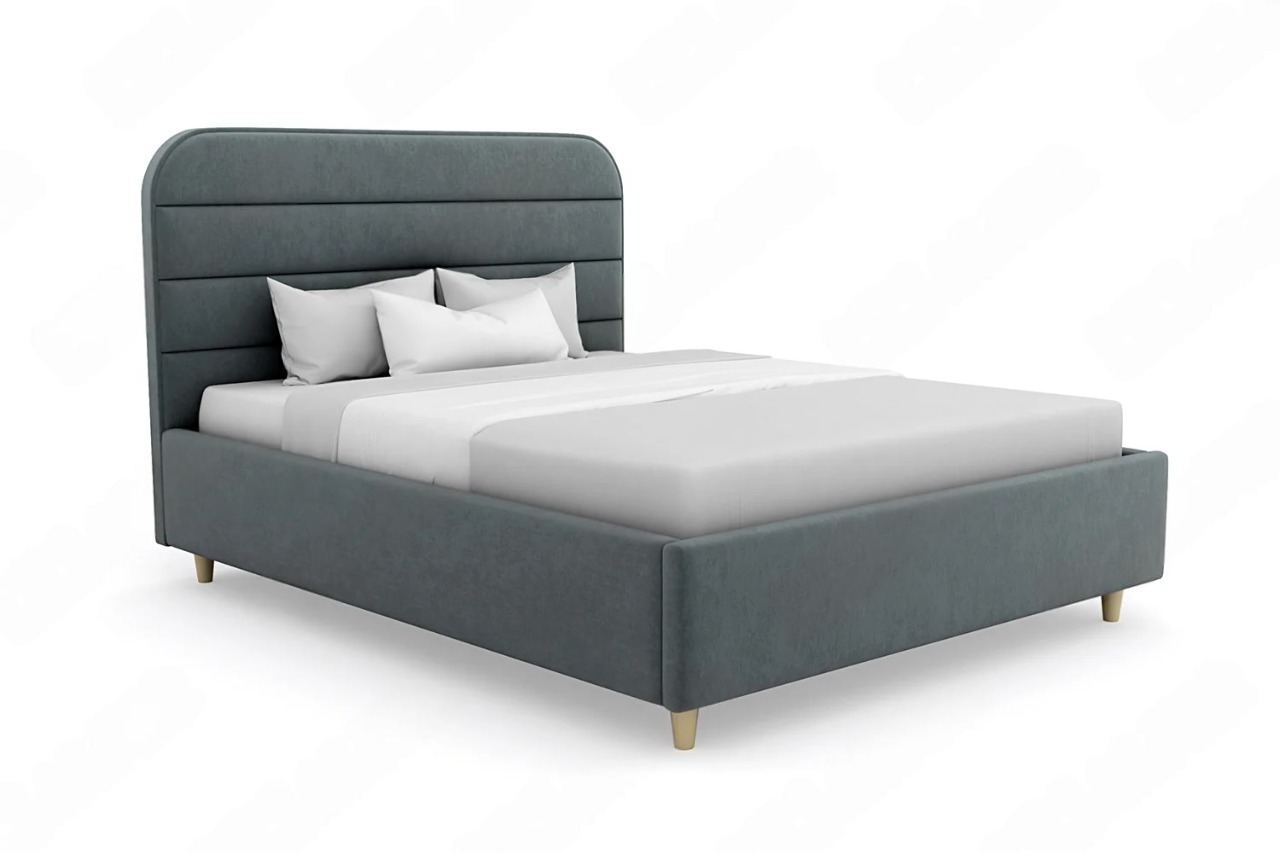 Горизонтальные линии создают изящный стиль изголовью, создавая визуальный эффект в вашей спальне. За счет большого пространства между полом и каркасом, можно разместить ящики для хранения, которые позволят бюджетно и эффективно организовать пространство под кроватью.