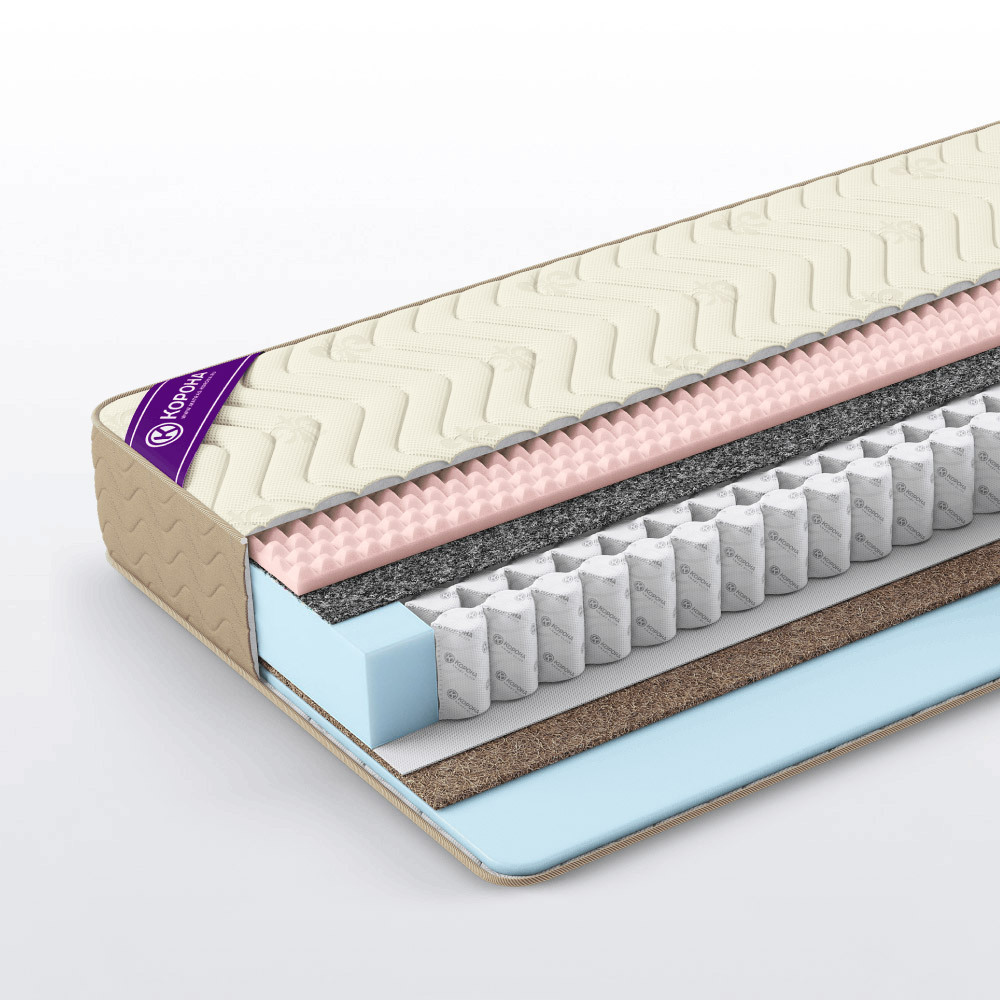 Безусловный хит в доступном ценовом сегменте. Модель на основе блока независимых пружин TFK 500 имеет классическую конструкцию, при этом, благодаря двусторонней жесткости, подойдет большинству пользователей, предпочитающих среднюю упругость спального места. Рифленая массажная пена высокой плотности способна выдерживать длительные локальные нагрузки без потери прочности.